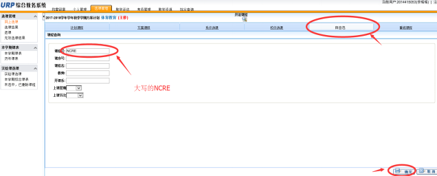 进入学校信息门户,点下方“教务系统”,进入教务系统,点选课管理-网上选课。选择主修培养方案之后,进入选课界面。点“自由选择”,在课程号对话框输入“NCRE”(注意字母大写),会搜索到所有可报考的科目,按选课操作选中即可。